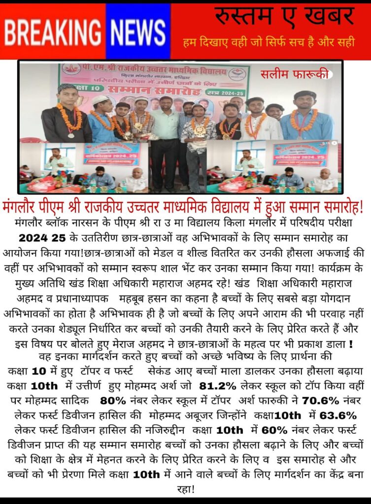 मंगलौर पीएम श्री राजकीय उच्चतर माध्यमिक विद्यालय में हुआ सम्मान समारोह!